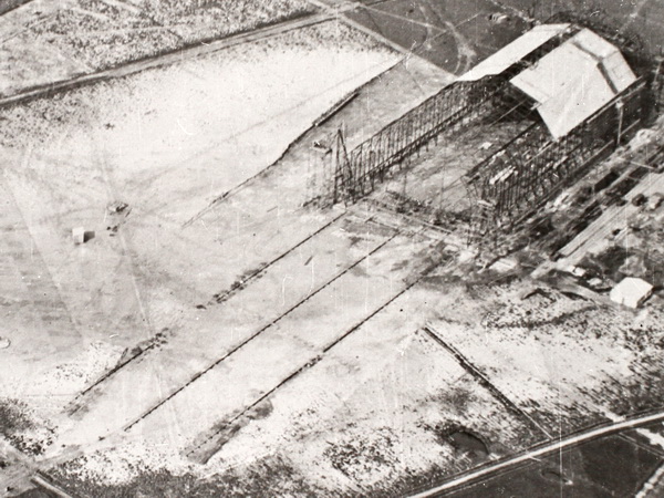 Arbejdet med den store dobbelthal på den nordlige del af Tønder Zeppelinbase er nu så vidt, at den kan anvendes som nødhavn. Hallen, der kan rumme to zeppelinere, er 42 m høj, 71 m bred og 180 m lang. Det store metalskellet er beklædt med letbeton og eternit, og fra den enorme port mod øst strækker sig til bugsering af luftskibene et trestrenget skinneanlæg 250 meter ud i landskabet .