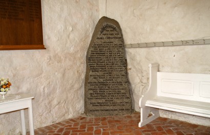 (Det er dog ikke på denne private slægtsforskningsside præciseret, at teksten er brugt på mindestenen i kirkens tårnrum. Jeg ved ikke, om der måske findes en anden mindesten om krigen 1914-18 på kirkegården eller et andet sted i sognet).