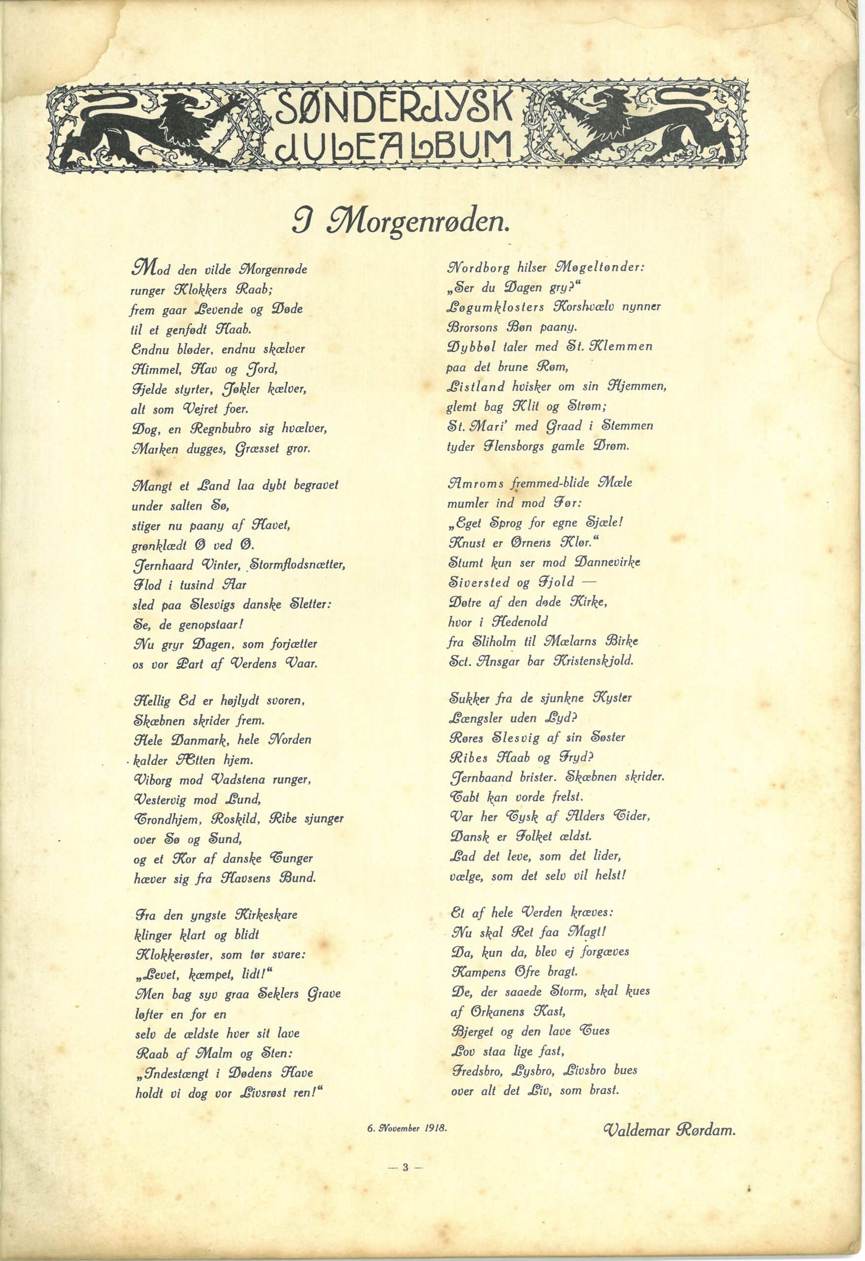 Dette indlæg i Julekalenderen 2025 er digtet “I Morgenrøden” ved digter og forfatter Valdemar Rørdam (1872-1946), der blev trykt i “Sønderjydsk Jule-Album 1918“.