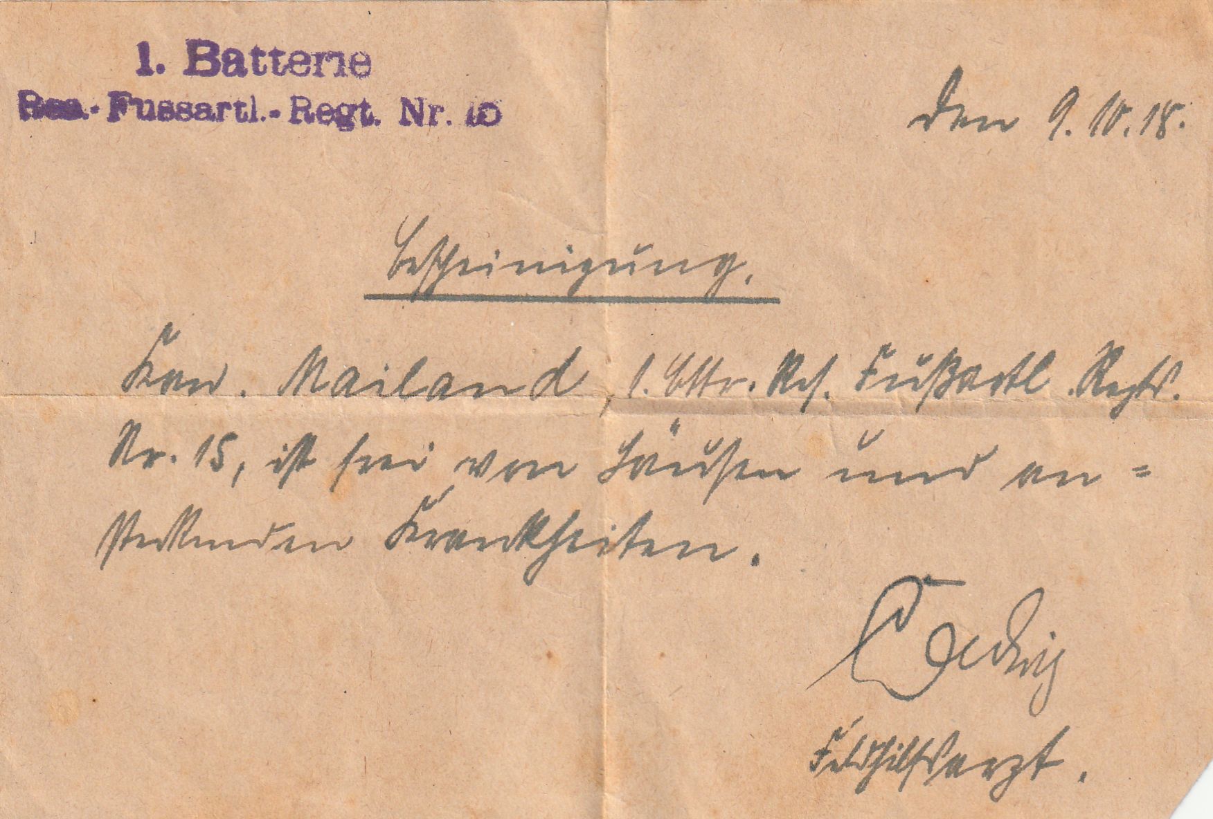 Men samtidigt tror jeg, at der Gemeindevorsteher har lavet en skrivefejl, han skulle vel have skrevet 9/11. 18, datoen for Peter Mailands sidste Urlaubstag.
