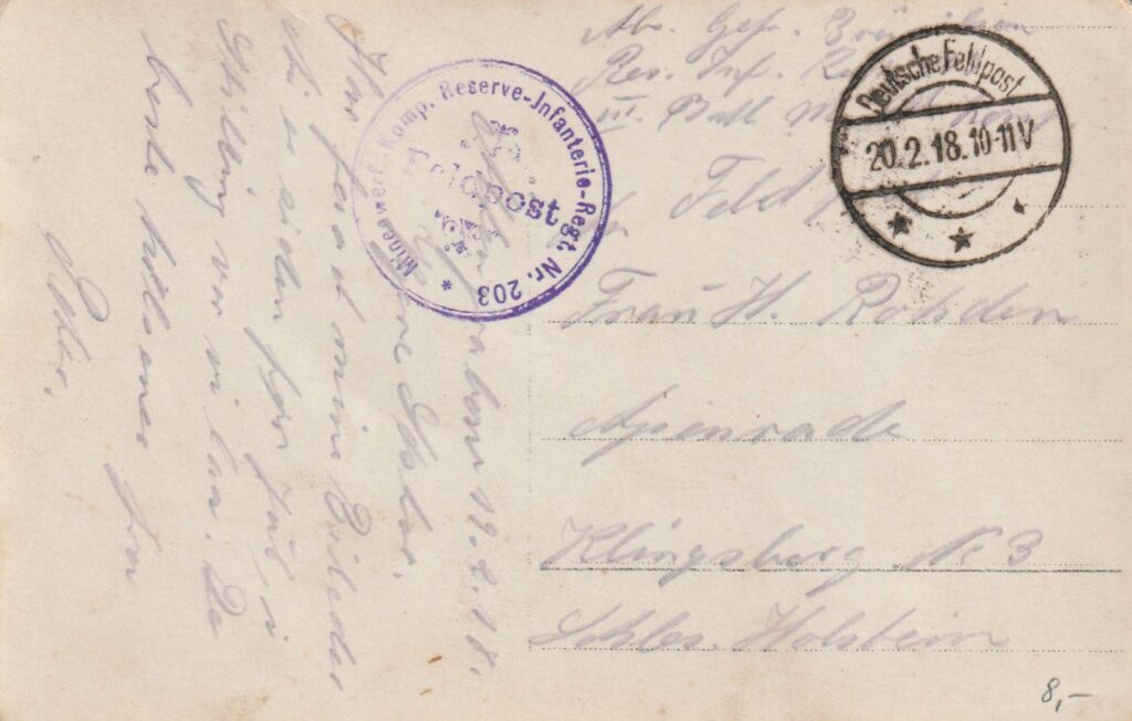Denne uges udfordring er et postkort skrevet 20. februar 1918 af Peter Brünilsen (1893-1974) til søsteren Helene Cathrine i Aabenraa. Original på Sønderborg Slot.