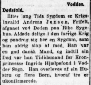 Andet: Opført i ”Verlustlisten” (dateret 29/10-1915) som ”Jensen I”, der er hårdt såret.