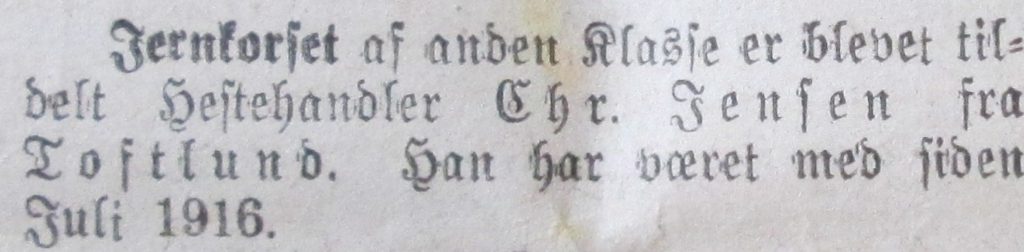 I avisen omtales han ”handelsmand eller hestehandler Chr. Jensen”