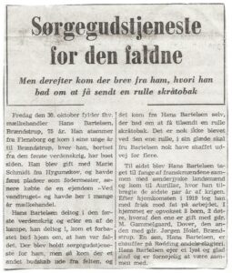 ”Sørgegudstjeneste for den faldne”, 1959. Artikel i anledning af Hans Chr. Bartelsens 75 års fødselsdag.