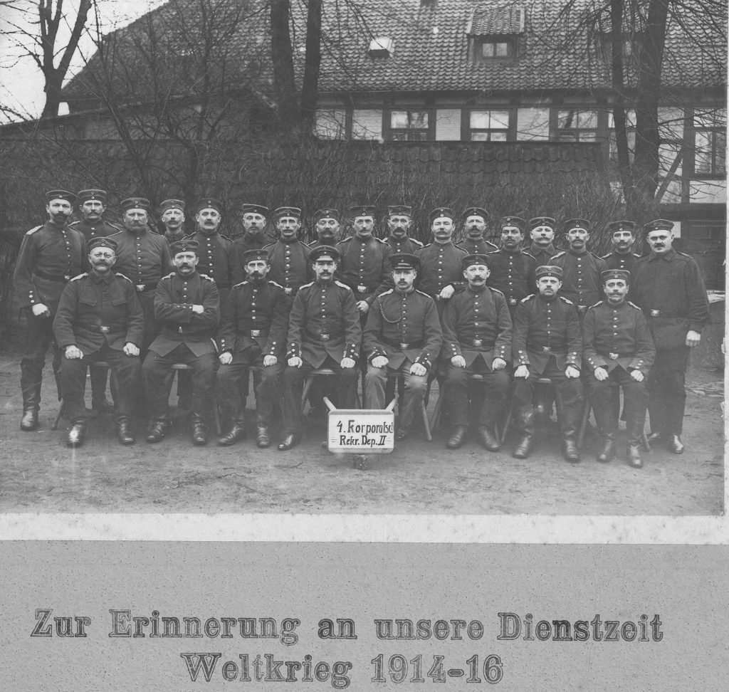Hartvig Brunner blev indkaldt straks ved krigens begyndelse i 1914. Han var hjemme på orlov både i januar, april og juli 1916.
