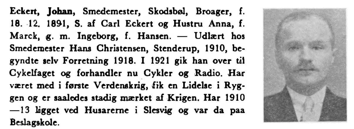 Erhverv: Schmiedegeselle i 1910. Senere cykelhandler i Broager sogn.