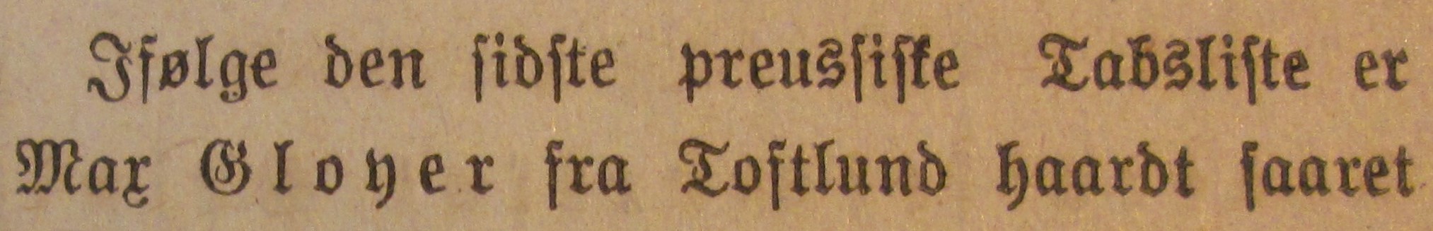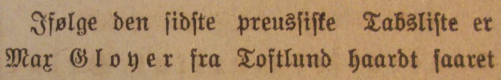 Tabslister: Gloyer, Max, 03/07-, Toftlund, Hadersleben, 20/09-1917 schwer verwundet, 06/07-1918 leicht verwundet.
