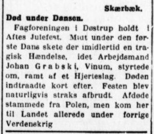 Dødsbiregister, Døstrup, RAA. Indført som ”Jan Grabski”, der er født i ”Igocow, Polen”.