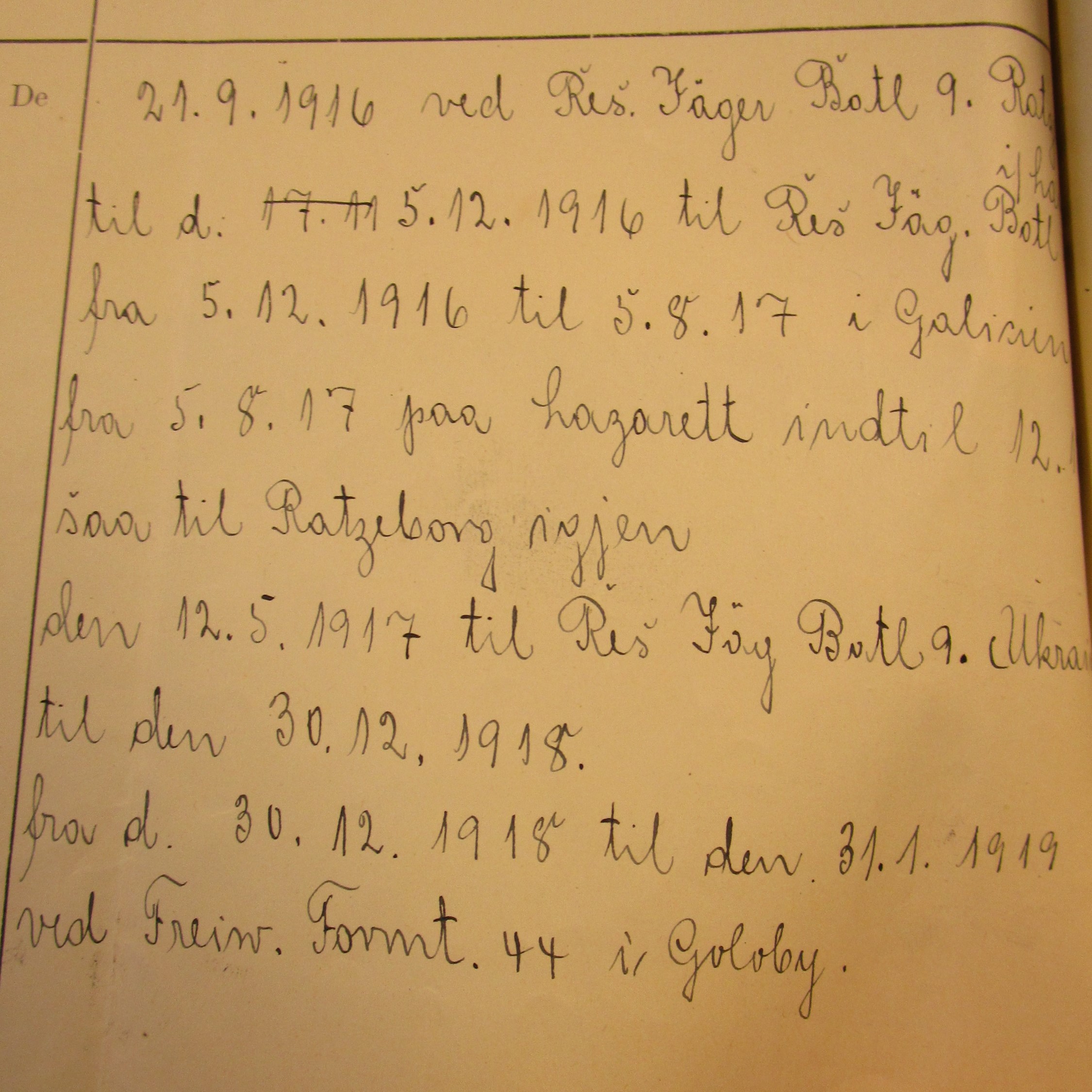 Jäger-Regiment 5, Reserve-Jäger-Bataillon 18 (i august 1917). Hjemsendt fra Freiwilligen-Bataillon 40, 4 Kompagnie (Goloby, Polen) i januar 1919.