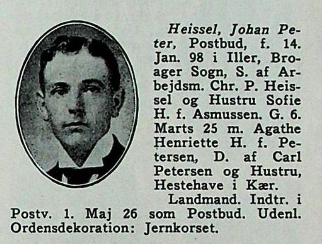 Jeg sidder lige og læser med interesse om de oplysninger, der er om min farmors bror Johann Peter Heissel. Der er oplysninger om hans forældre, men ikke at hans far Christian Peter også deltog i 1. verdenskrig.