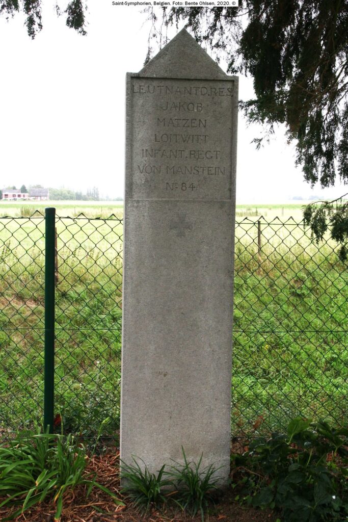 Falden i Krigen. Løjtnant i Reserve-Infanteriregimentet Nr. 84 Jakob Matzen fra Løjtved er den 23. August falden i Krigen.