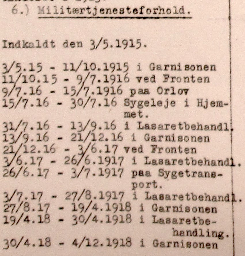 Det var et hårdt liv ved fronten, og mange af soldaterne fik livsvarige men. Nis Mathiesen havde fronttjeneste et halvt år, så blev han igen syg. Nu konstaterede man, at han havde en hjertefejl. De følgende måneder var han skiftevis til lazaretbehandling og tilbage i garnisonen, indtil han efter krigens slutning blev hjemsendt den 04.12.1918.