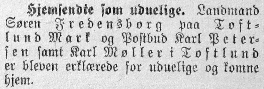 Karl Møller boede i Toftlund. Der vides kun om ham, at han i juni 1917 blev hjemsendt som uduelig.