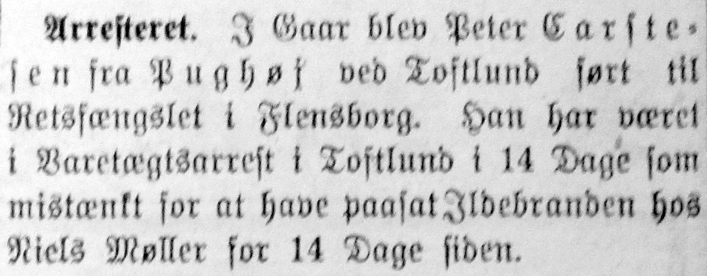 I begyndelsen af april 1916 var han igen på vej til fronten. Denne gang blev han sendt til Vestfronten. Herfra sendte han en hilsen hjem gennem Hejmdal til venner og bekendte. Samme måned søgte han igen orlov, fordi hans gård var brændt ned og skulle genopføres. Han fik 3 måneders orlov. Om man nogensinde fandt brandårsagen, vides ikke, men man mente, at branden var påsat, og der var en mistænkt. Ungkarl Peter Carstensen fra Pughøj blev arresteret for ildspåsættelsen. Han kom i varetægtsfængsel i Toftlund. Efter 14 dage her, blev han den 31. marts ført til Retsfængslet i Flensborg. Her sad han endnu 14 dage, hvorefter han blev løsladt.