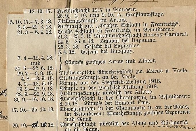 Fra 11/10-1917 ved 8 Kompagnie, Grenadier-Regiment 89 og deltog i kampe i Flandern og Frankrig.