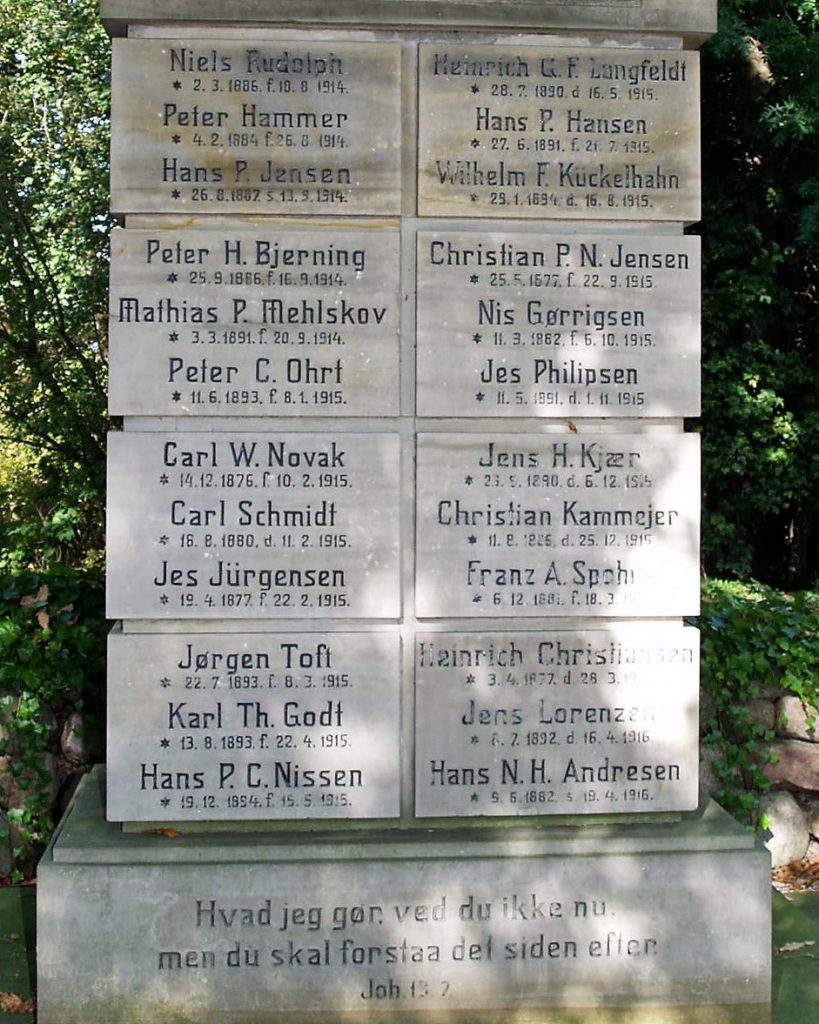 FT 1925 boede faderen som enkemand i Gråsten sammen med søsteren Marie Christine født 14/04-1898 i Haderslev, det er vel derfor navnet kommer med på mindestenen i Gråsten.