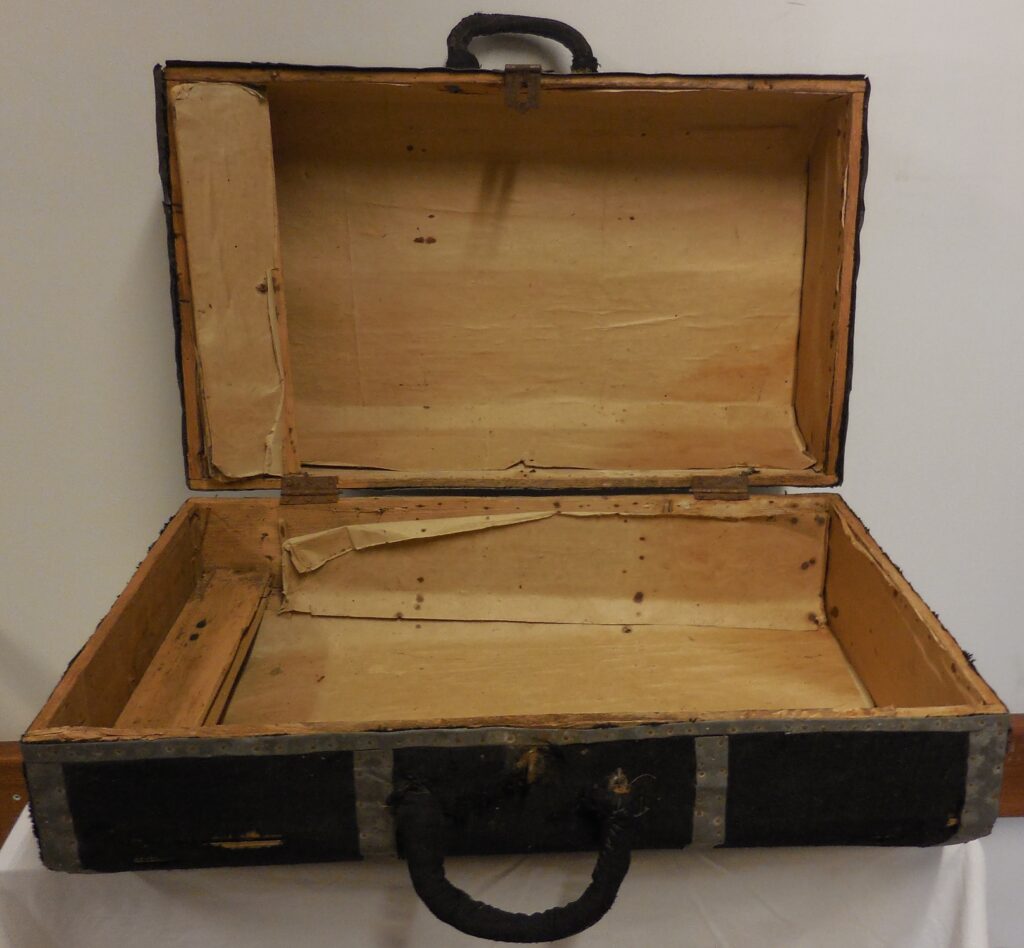 Kuffert fremstillet og brugt af krigsfangen Theodor Belose (1889-1970), der fra 1915 til 1970 var bosat i Uge sogn. Kufferten findes i Museum Sønderjyllands samlinger.